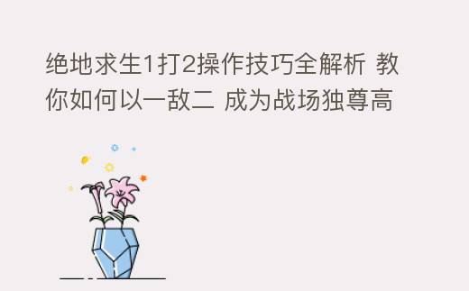在《绝地求生》中,1打2的操作技巧需要玩家具备良好的地图意识、战术运用、射击技巧和冷静的心态。通过不断练习和总结,相信你也能在游戏中以一敌二,独霸战场。