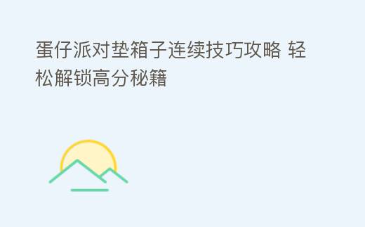 摘要:蛋仔派对垫箱子连续技巧:轻松掌握游戏高阶玩法在《蛋仔派对》这款充满趣味与挑战的手机游戏中,垫箱子连续技巧是许多玩家梦寐以求的技能。这项技巧不仅能够提升游戏体验,还能在竞技场中助你一臂之力。本文将深入解析蛋仔派对垫箱子连续技巧,帮助玩家轻松掌握这一高阶玩法。一、了解垫箱子连续技巧的基本原理垫,蛋仔派对垫箱子连续技巧攻略 轻松解锁高分秘籍