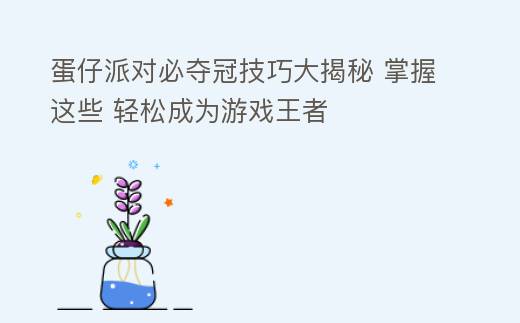 在《蛋仔派对》这款充满趣味与挑战的休闲竞技游戏中,每一位玩家都渴望在游戏中脱颖而出,成为最终的王者。要想在激烈的比赛中稳居高位,掌握一些必夺冠的技巧至关重要。本文将为你揭秘《蛋仔派对》必夺冠的技巧,助你轻松驾驭游戏,成就王者之路。