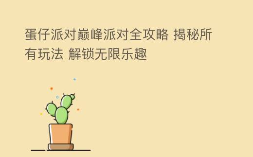 在《蛋仔派对》这款充满趣味与挑战的手机游戏中,巅峰派对模式无疑是玩家们津津乐道的亮点。这里,我们将全方位解析巅峰派对的所有玩法,助你轻松驾驭这场狂欢盛宴。