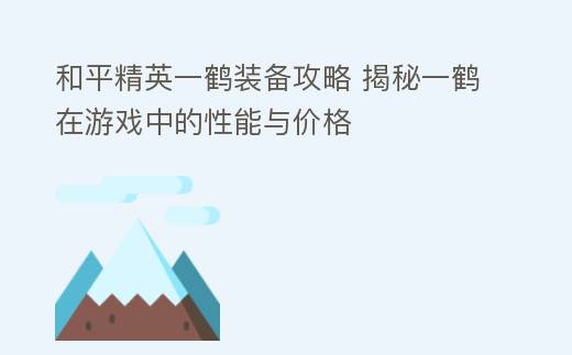 和平精英一鹤装备攻略 揭秘一鹤在游戏中的性能与价格
