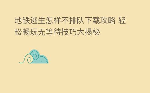 地铁逃生怎样不排队下载攻略 轻松畅玩无等待技巧大揭秘