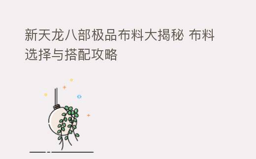 文章标题:新天龙八部极品布料攻略:打造特殊角色风采
