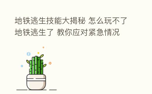地铁逃生技能大揭秘 怎么玩不了地铁逃生了 教你应对紧急情况