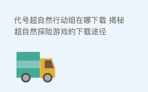前言:你是否对《代号超天然行动组》这款神秘的游戏充满好奇?这款游戏以其特殊的玩法和神秘的背景故事吸引了众多玩家。那么,代号超天然行动组在哪下载呢?本文将为你详细解答,让你轻松加入这场超天然冒险之旅。