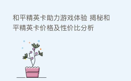 和平精英卡助力游戏体验 揭秘和平精英卡价格及性价比分析