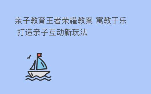 亲子教育王者荣耀教案 寓教于乐 打造亲子互动新玩法