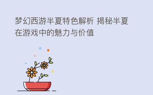 前言:在《梦幻西游》这款经典游戏中,半夏作为一个特殊的节日活动,为玩家们带来了别样的夏日风情。半夏节期间,游戏内充满了丰富的活动和任务,让玩家们沉浸在浓厚的节日气氛中。本文将带领大家深入了解梦幻西游半夏的相关内容、玩法以及解决技巧,让你在游戏中畅享夏日乐趣。