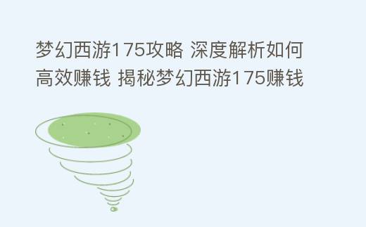 梦幻西游175攻略 深度解析如何高效赚钱 揭秘梦幻西游175赚钱秘籍