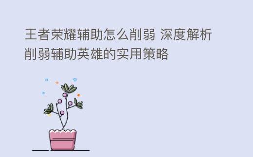 王者荣耀辅助该该怎么办办削弱:策略与技巧解析
